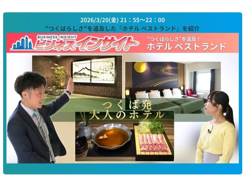 ビジネスインサイトでホテルベストランドが紹介されました! 2026/03/22 3月20日(金)21時55分~22時00分、千葉テレビ『ビジネスインサイト』でホテルベストランドが紹介されました! 最上階のビューバスツインルームの他、大浴場、レストランのお菜屋 わだ家が紹介されました。 ぜひYou Tubeでご確認くださいませ。 🔶ビジネスインサイト