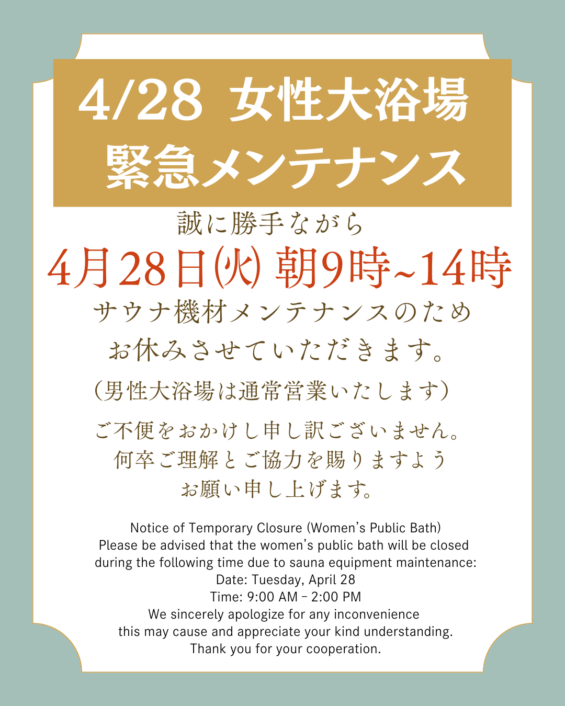 4/28 女性大浴場緊急メンテナンス